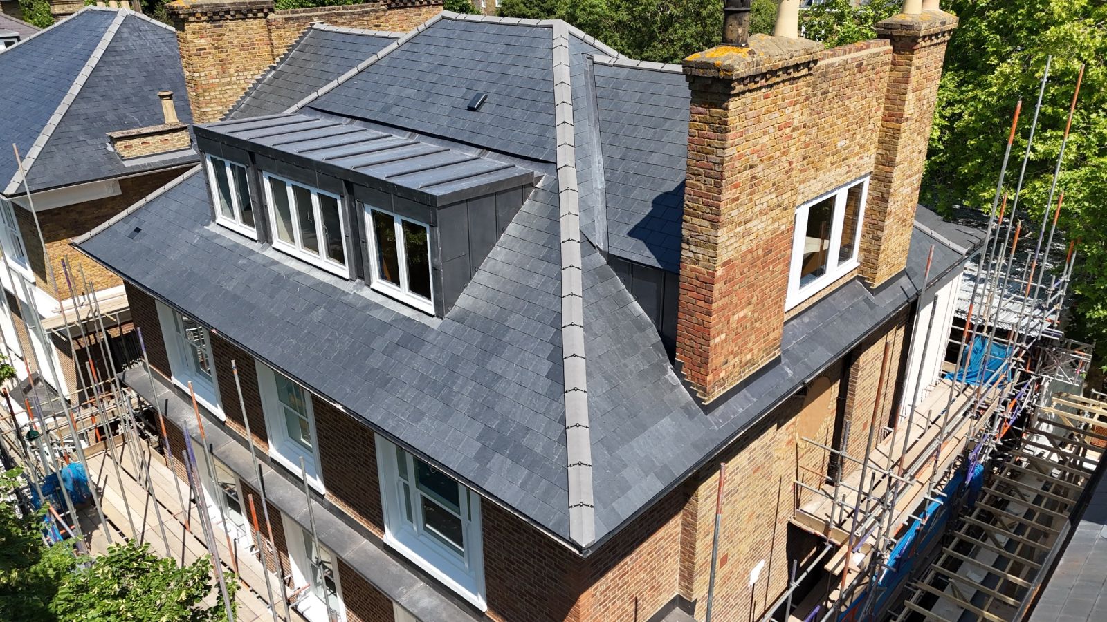 Materials: Cupa R12 natural Spanish slate on 25x50 timber pre graded battens on klober permo air breather membrane. Lead cladding to dormersPrivate residential job